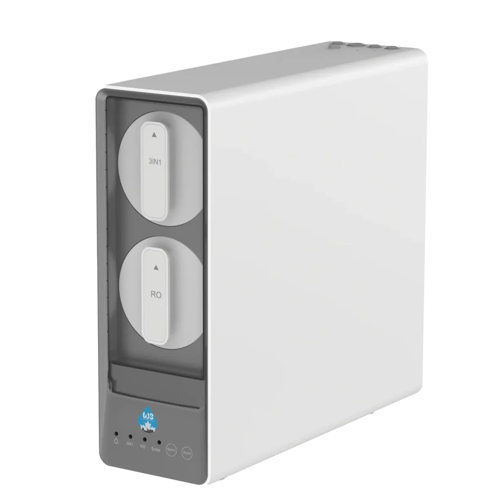Tank-Less RO (easy to change filters, no pressure tank needed, leak detector)